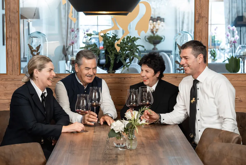 Evelin empfängt Sie mit einem offenen Ohr und einem feinen Gespür für Ihre Wünsche. Stefan liebt gutes Essen und ist immer für ein Gespräch zu haben. Midi hat alles im Blick, achtet auf jedes Detail und ist die gute Seele des Hauses. Erich zeigt Ihnen die schönsten Wege und kennt zu jedem Gericht den passenden Wein. Zusammen schenken sie Ihrem Urlaub ein echtes Zuhausegefühl.